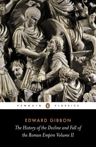 •The History of the Decline and Fall of the Roman Empire Volume II by Edward Gibbon (1781–1788): Speaking of great prose stylists, here’s Edward Gibbon with by far the longest book I read all year. Gibbon’s sentences are beautiful, although some of them over-rely on vague paraphrases (the prince, the general) and then I get confused. Perhaps not as fresh as the first volume, but so chokingly full of fascinating detail. I used one story from the book in this post.