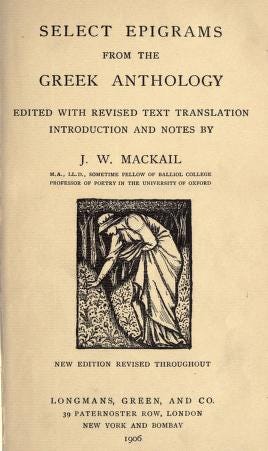 •Select Epigrams from the Greek Anthology edited by John William Mackail (coll. 1906): This book would have ranked higher if I’d liked the prosy translations more.