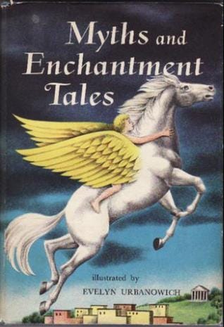 •Myths and Enchantment Tales by Margaret Evans Price (1941): I thought these children’s retellings of Greek and Roman myths were too slow and stately, but one of my kids preferred them to the d’Aulaires’, so !!!!!
