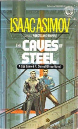 •The Caves of Steel by Isaac Asimov (1953): The problem always is that you can imagine future technology more easily than you can imagine future people to live among that technology. Sometimes I’m able to suspend my disbelief and sometimes it’s the caves of steel. Nice poetic title. I always like Asimov’s Foundation books more than his robot books, I guess.