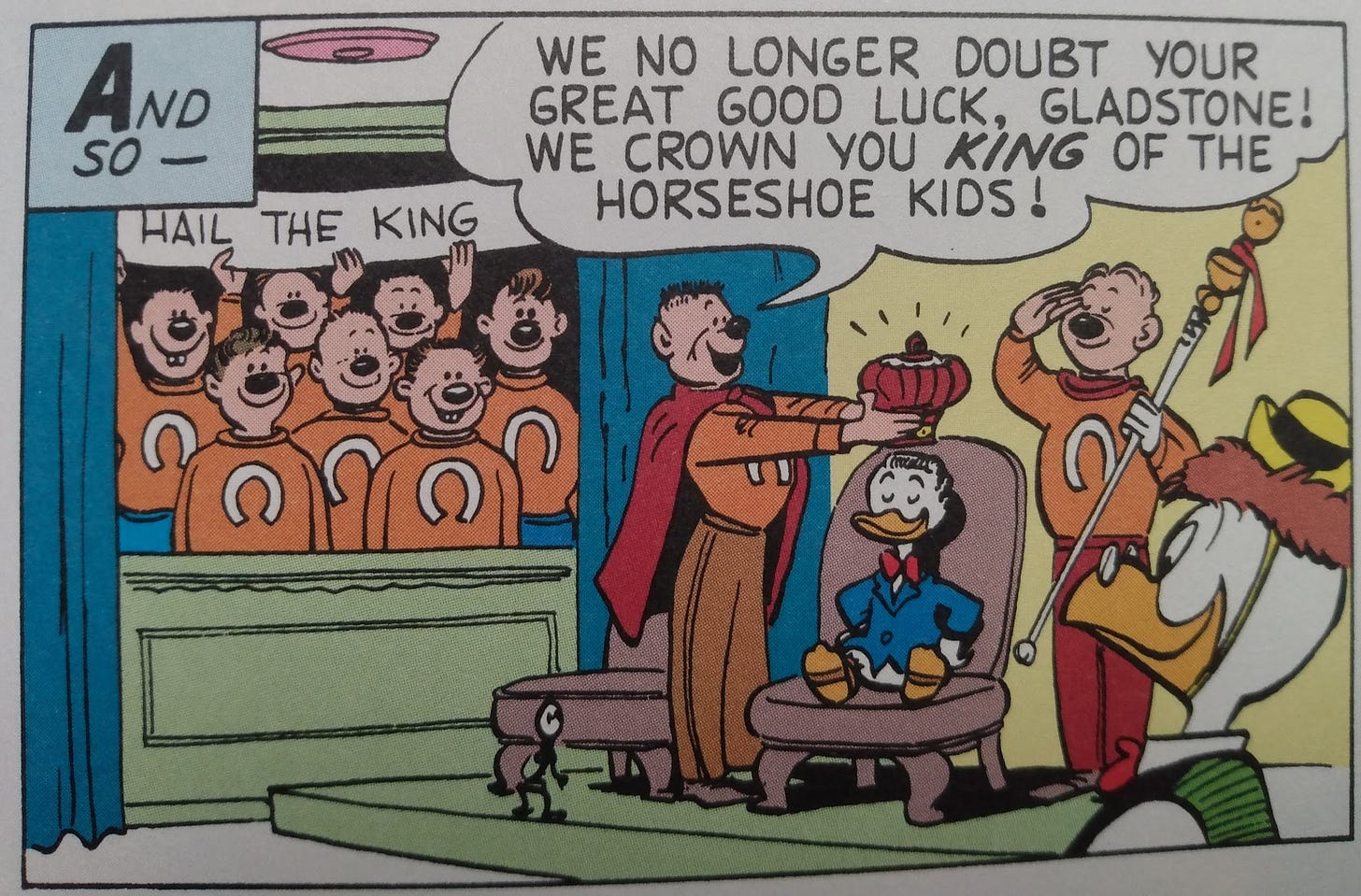 •In the flat America of the screen: We could go on, of course, with fictional lodges that fictional characters belong to. Betty Boop was in the Mystic Order of the Boom Boom a Hotcha (the soundtrack kind of mumbles it, so spelling interpretations vary; watch it here). Laurel & Hardy were members of the Sons of the Desert. Dobie Gillis was in the Benevolent Order of the Bison. Gladstone Gander (Donald Duck’s cousin) belonged to the Royal Order of Horseshoe Kids.